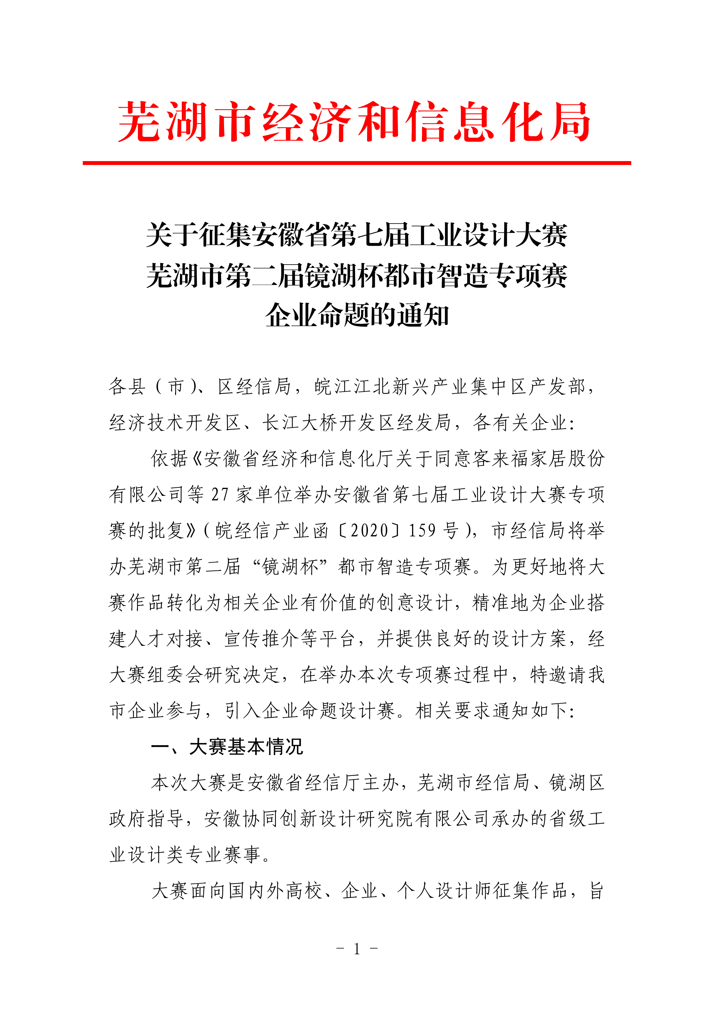 關于征集安徽省第七屆工業(yè)設計大賽蕪湖市第二屆鏡湖杯都市智造專項賽企業(yè)命題的通知