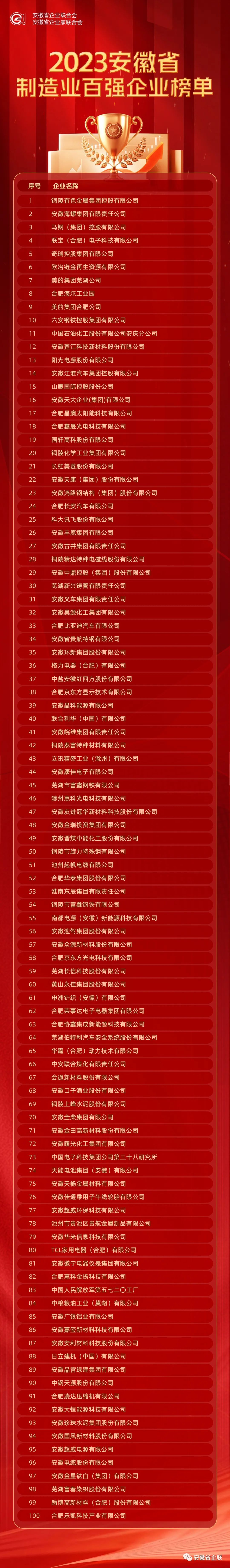 附件:2023安徽省百強企業(yè)、制造業(yè)、服務業(yè)百強企業(yè)名單
